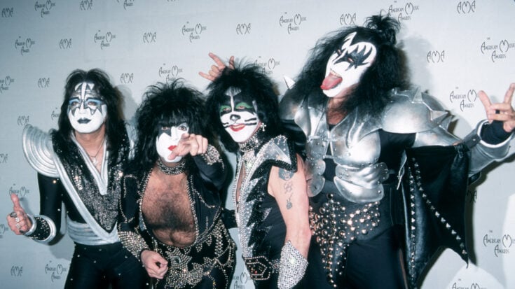 Musicians Ace Frehley, Paul Stanley, Peter Criss and Gene Simmons of Kiss attending 26th Annual American Music Awards on November 11, 1999 at the Shrine Auditorium in Los Angeles, California. (Photo by Ron Galella, Ltd./WireImage)
