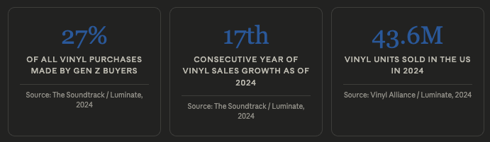 Gen Z is the first generation to grow up entirely inside the streaming era. They have had access to virtually all recorded music since childhood, served to them in frictionless, personalized queues. And somewhere along the way, that frictionlessness started to feel like a problem. When music is always one tap away and costs nothing per listen, it stops feeling like it costs anything at all. Classic rock albums on vinyl require a physical trip to a store, actual money, and the decision to sit down and listen to a full side without skipping. That friction turns out to be a feature. It reintroduces stakes to the act of listening, and Gen Z is hungry for that.