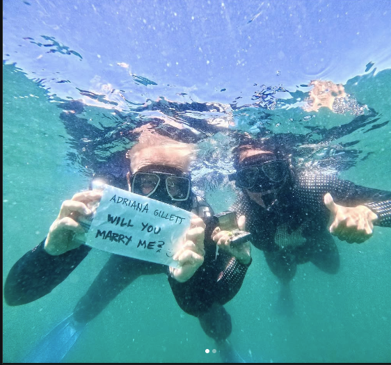 Gillett shared the same image on her Instagram account and elaborated on the memorable moment. “The BEST birthday trip surprise,” she wrote. “Swimming with whale sharks on Friday the 13th with the most unique, special, and romantic proposal a Pisces could ever imagine. In a sea full of fish, we caught each other. Thank you God for putting us together.”