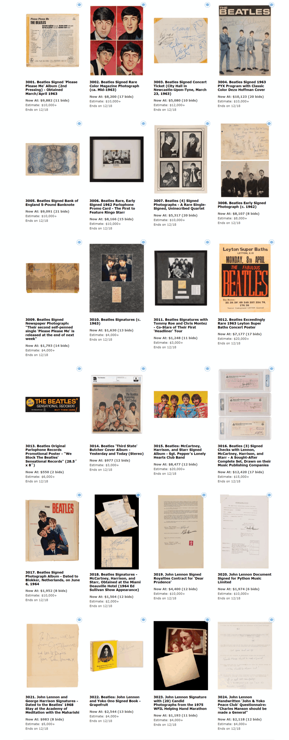 Auction Highlights From Rock History