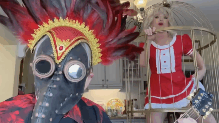 This week, Fripp steps into frame wearing a full plague-doctor mask topped with an extravagant, multicoloured headdress. At the same time, Toyah performs inside an oversized birdcage, dancing and rattling the bars with gleeful abandon. The visual spectacle is so overwhelming that the song itself — a ragged, punk-spirited spin on Iggy Pop’s 1986 hit “Real Wild Child (Wild One)” — almost becomes an afterthought.